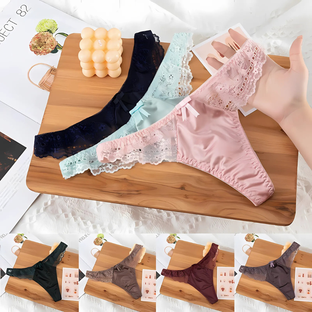 Elevate your lingerie collection with this pack of two sheer lace thong panties. Featuring delicate lace that adds a touch of elegance, these thongs provide a flirty and comfortable fit. Perfect for special occasions or everyday wear, they offer both style and allure. A charming addition to your wardrobe!